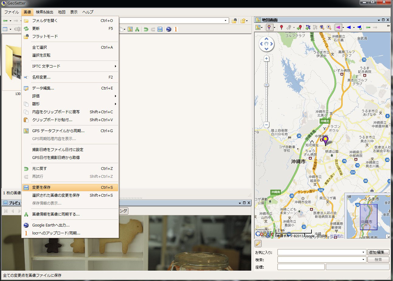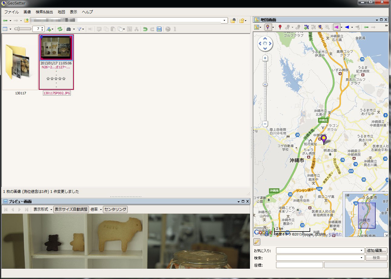 GeoSetter」はGoogle Map上のポインタをドラッグ&ドロップで移動させ、