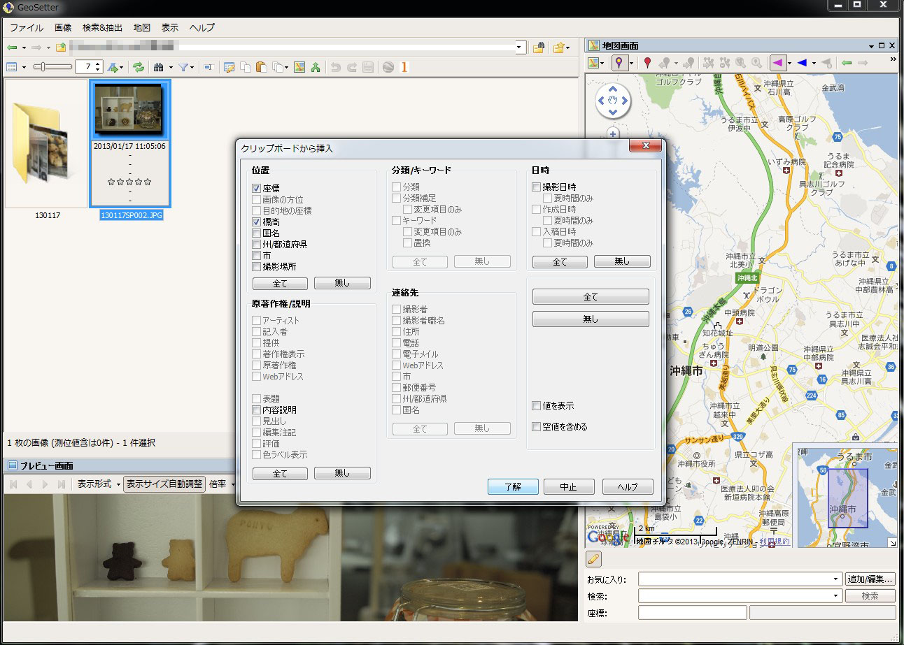 そのデータを「GeoSetter」に読み込ませて「内容をクリップボードに複写」を左クリック!!