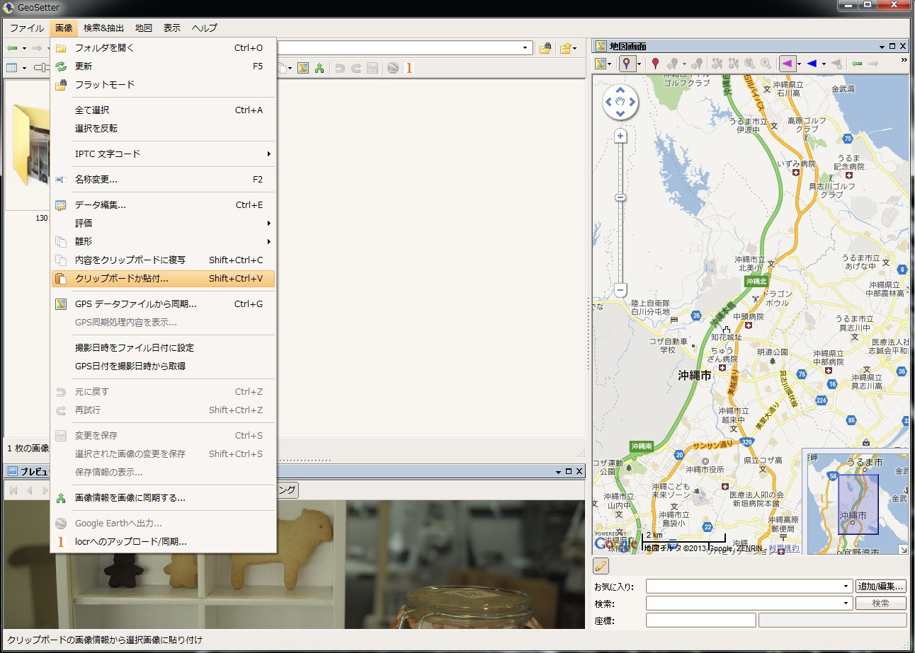 位置データを追加したいを選択し「画像-クリップボードか貼り付け・・・」をクリック!!